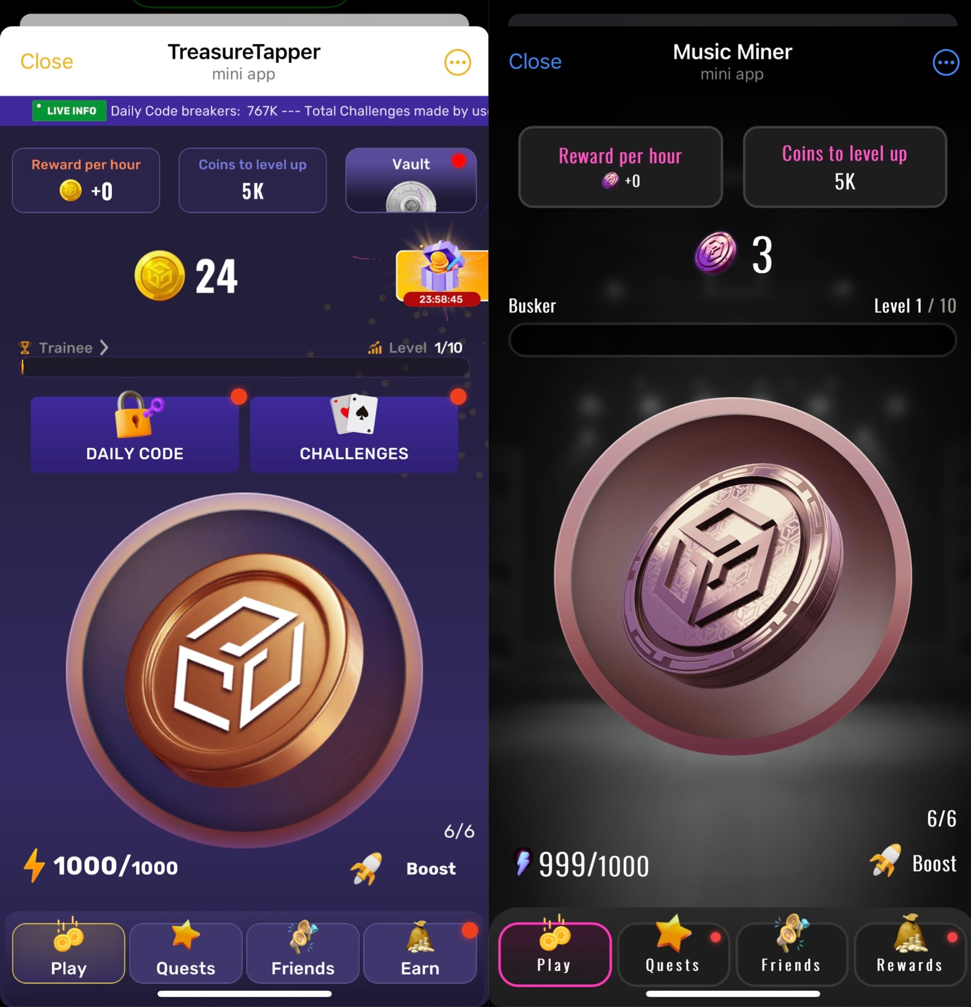 Gala Music, a decentralized music streaming platform, has announced the launch of its "clicker-style" game, which is now available as a Telegram Mini App. Music Miner has standard goals: to enhance Web3 music engagement and onboard a broader audience from the Telegram ecosystem. The interface is primitive as always: click, invite, earn $TREZ. The daily codes and quests that allow passive farming follow similar mechanics of one of the most popular clickers, Hamster Kombat, while the design is similar to TapSwap.