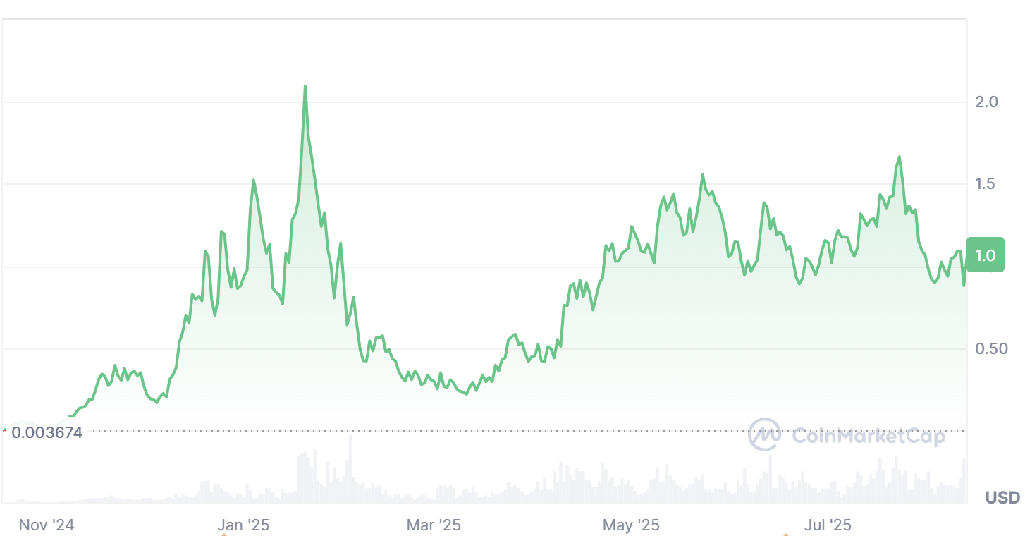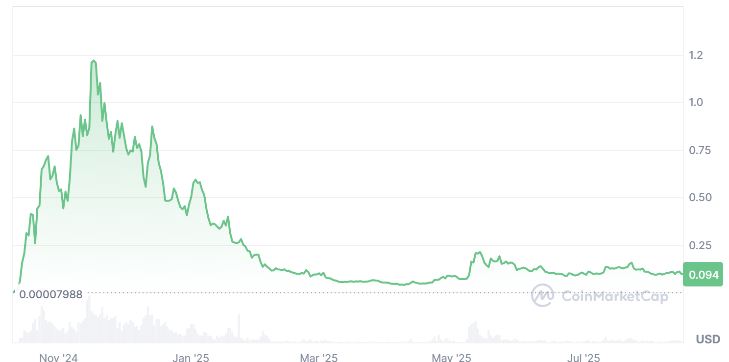 By mid August 2025, $GOAT was already trading –84% below its all-time high, while $FART had dropped into obscurity with volumes a fraction of their peak . The punchline is the same: hype alone is not a moat.