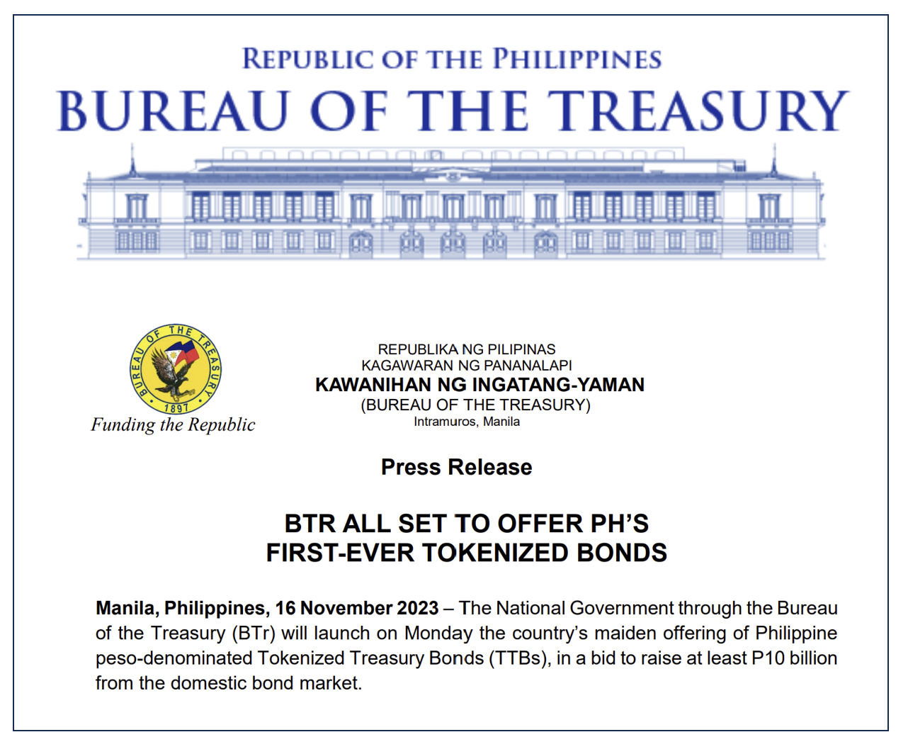 Also tokenizing its treasury bonds is the Philippines, which will reportedly be selling $179 million dollars worth of its, er… tokenized treasury bonds. The move is an attempt to further develop the country’s domestic debt market.