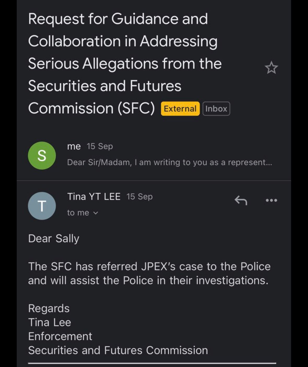 According to JPEX, it sought guidance from the SFC after the warning, but received a harsh response: