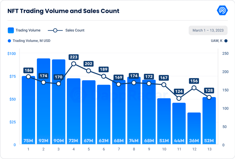 The report, published on March 16, mentioned that NFT trading volumes were drifting between $68 million and $74 million on March 10 in the event of SVB’s collapse, after which they declined to $36 million on March 12. The fall took place along with a 27.9% fall in the count of daily NFT sales that happened between March 9 and March 11. On March 11, 11,440 NFT traders were active and it was the day with the lowest figure since November 2021.