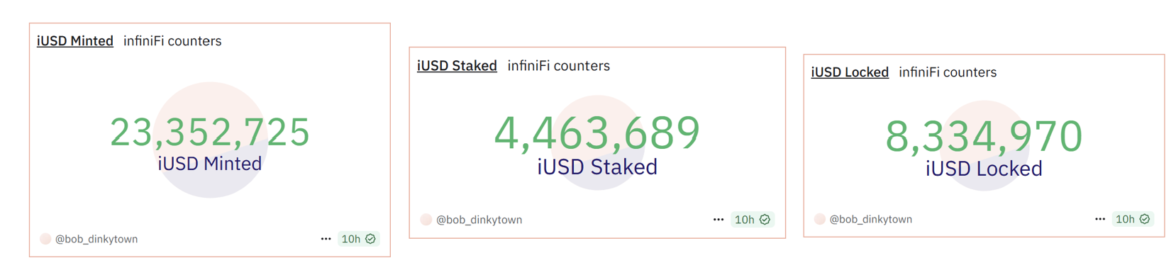As of writing, out of the 23 million iUSD minted, 4.4 million are staked and 8.3 million are locked.