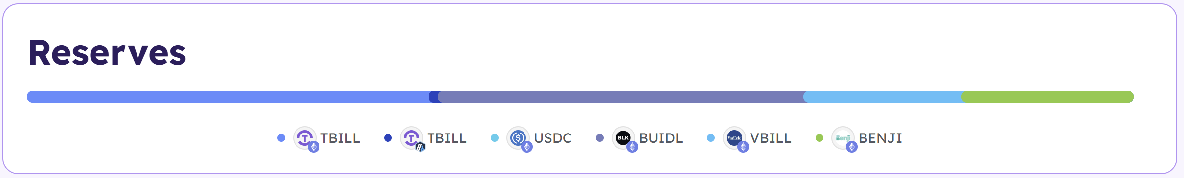 Each TBILL token is backed 1:1 by short-term U.S. T-Bills and a small portion of U.S. dollars. TBILL holders receive returns that reflect the performance of the underlying T-Bills portfolio.