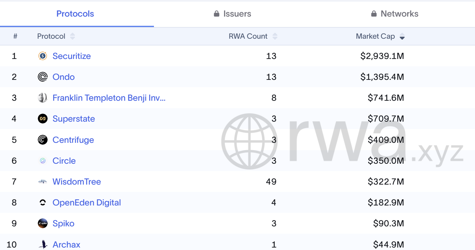 The project holds 8th place in the league of the largest U.S. Treasury bills tokenization projects.