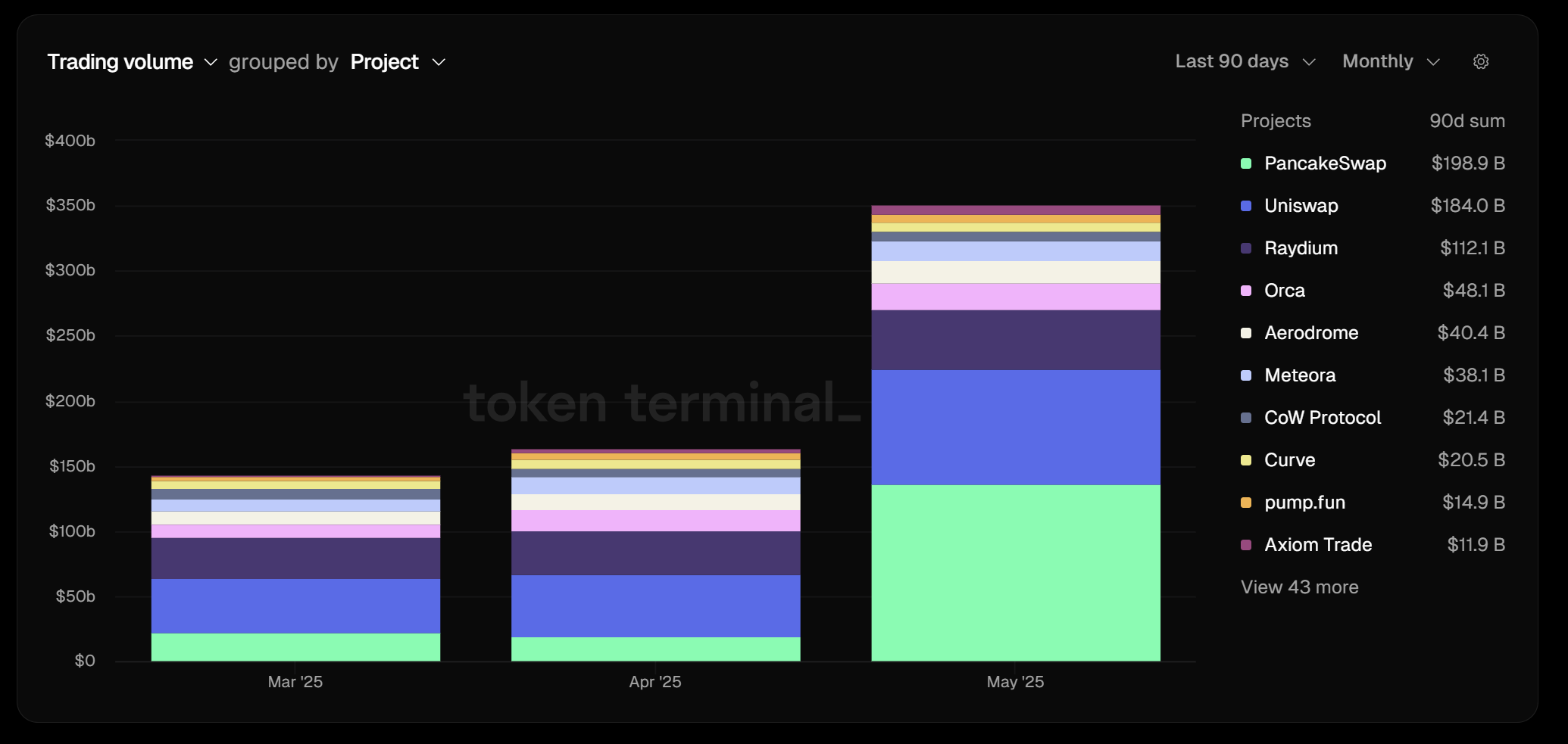 PancakeSwap recently concluded one of its strongest months ever, hitting a massive $136 billion in trading volume for May. That gave it nearly 40% of the entire DEX market share—well ahead of Uniswap and Raydium, which recorded around $80 billion and $40 billion, respectively.