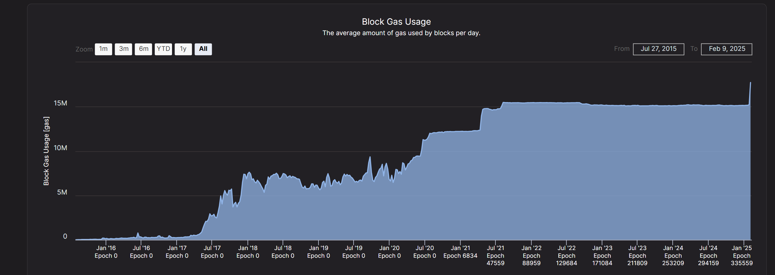Right now, on average, blocks consume around 15 million gas—a figure that has remained relatively stable since 2021 as most activity shifted to Layer 2 solutions. Although the higher gas limit can help process more transactions during periods of congestion (like during the NFT boom in 2021), such congestion is rare nowadays.