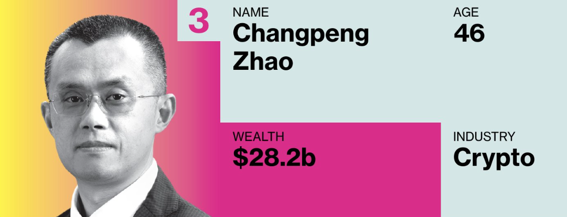On Tuesday, Bloomberg published 'The New Finance Rich' report placing Binance's founder and CEO Changpeng Zhao (CZ) on the 3rd position with net worth estimate of $28 billion.