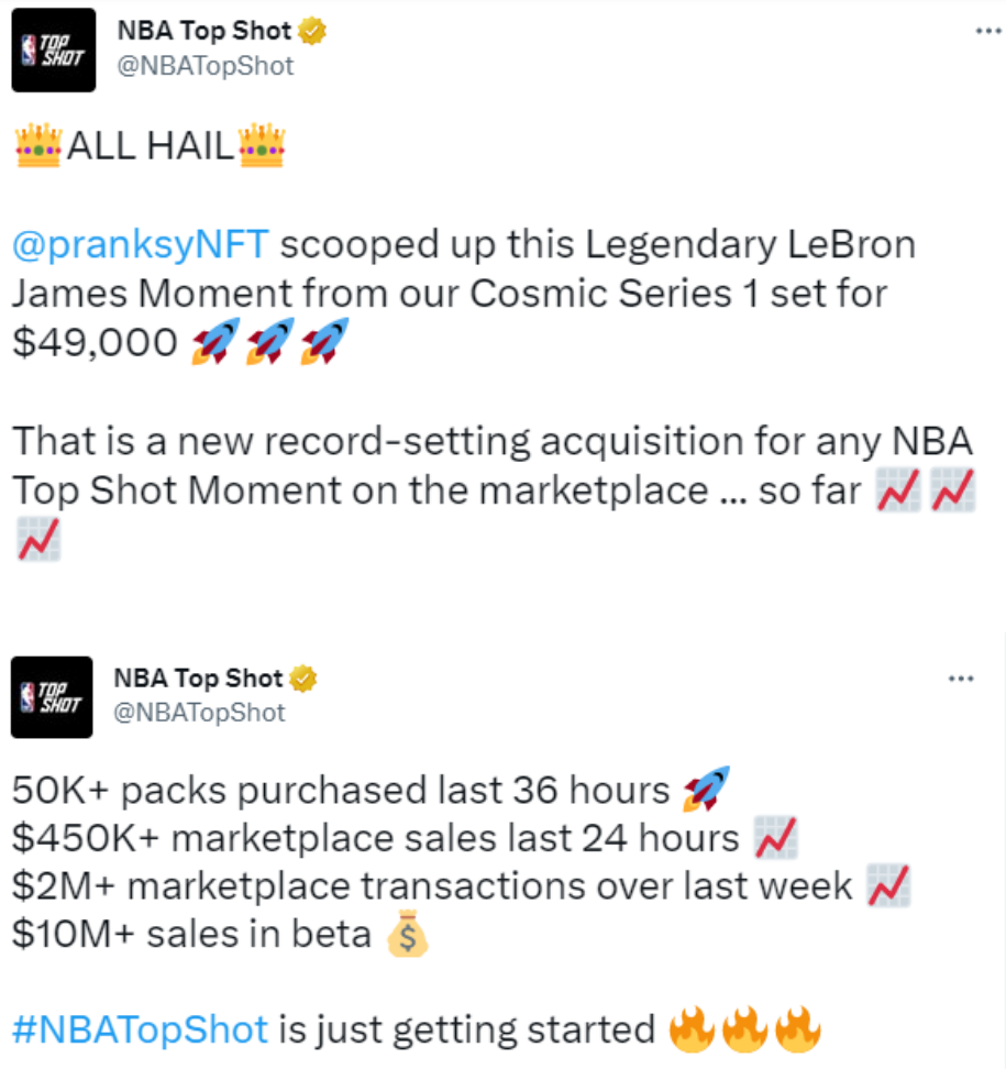 “As to the allegations here, the Court finds that Defendants’ public statements and marketing materials objectively led purchasers to expect profits. <…> Each Tweet promotes a recent sale or statistics of recent sales of Moments on the Marketplace. And although the literal word ‘profit’ is not included in any of the Tweets, the ‘rocket ship’ emoji, ‘stock chart’ emoji, and ‘money bags’ emoji objectively mean one thing: a financial return on investment”