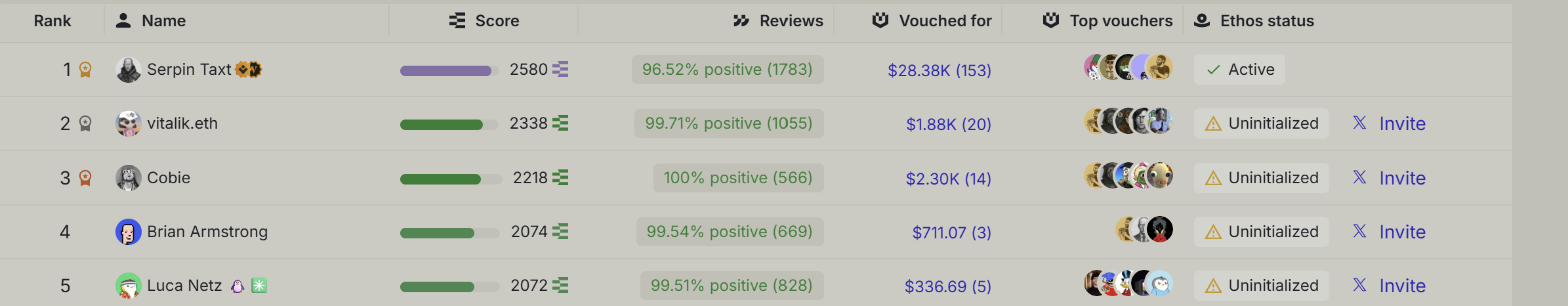 Real-world usage suggests that vouch size on Ethos does not linearly amplify influence. Score impact appears to reflect a combination of capital commitment, the credibility of the voucher, and historical XP. Ethos is therefore economically anchored, but not purely capital-dominated.