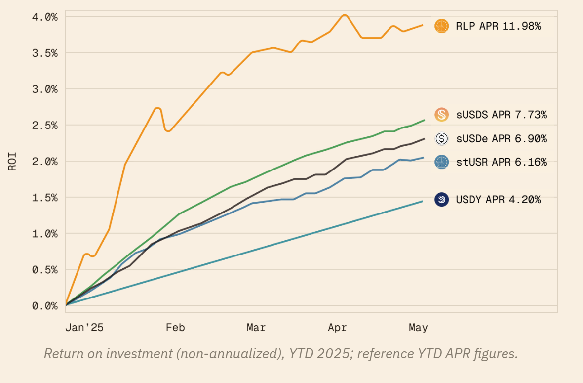 When it comes to yield, RLP has outperformed both USR and other stablecoins like Ethena’s sUSD and USDe since its launch.