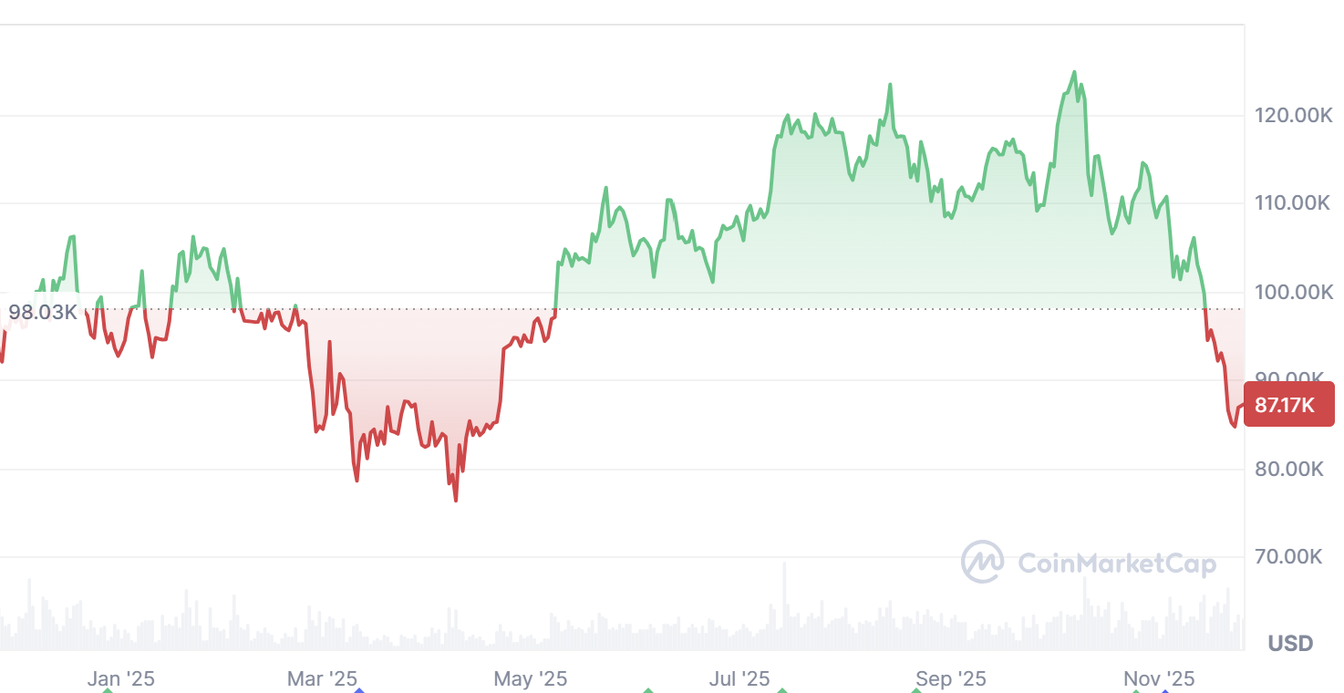 Fast-forward to late November, and the deleveraging still wasn’t over. Bitcoin is trading below its yearly average, and several more billions in leveraged positions have been flushed out through repeated waves of forced selling.