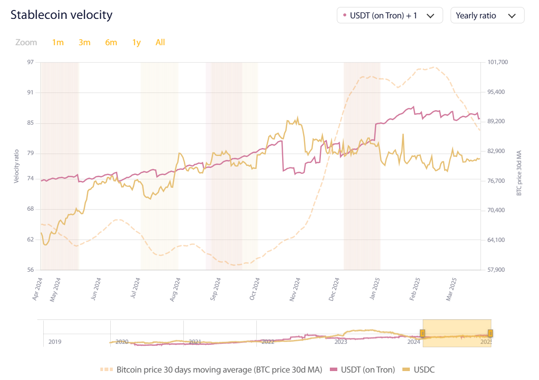 Stablecoins remain one of the top use cases in crypto, with the market showing tremendous growth year over year. USDC market share climbs to 25% taking 4% from USDT. The velocity measure for USDT of Tron and USDC is almost equal, while USDT on Ethereum moves two times slower.