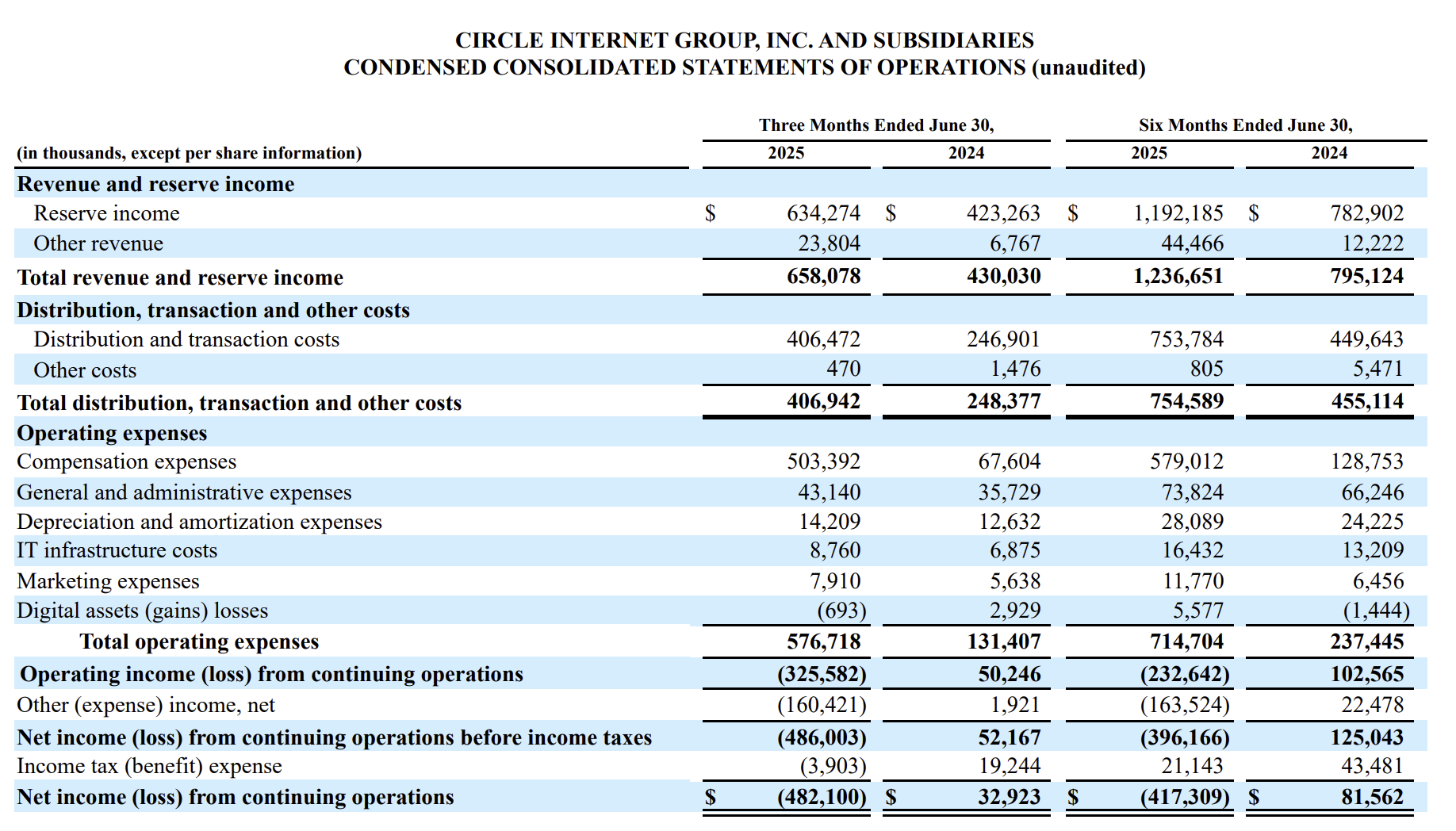 Much of this expense was triggered by the June IPO, which unlocked and sharply increased the value of long-held equity awards. Most of the benefit went to founders, early executives, and long-tenured staff who held large blocks of vested options, which surged in value once Circle’s shares began trading publicly.